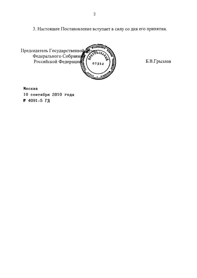 ПОСТАНОВЛЕНИЕ ГД ФС РФ от 10.09.2010 N 4091-5 ГД