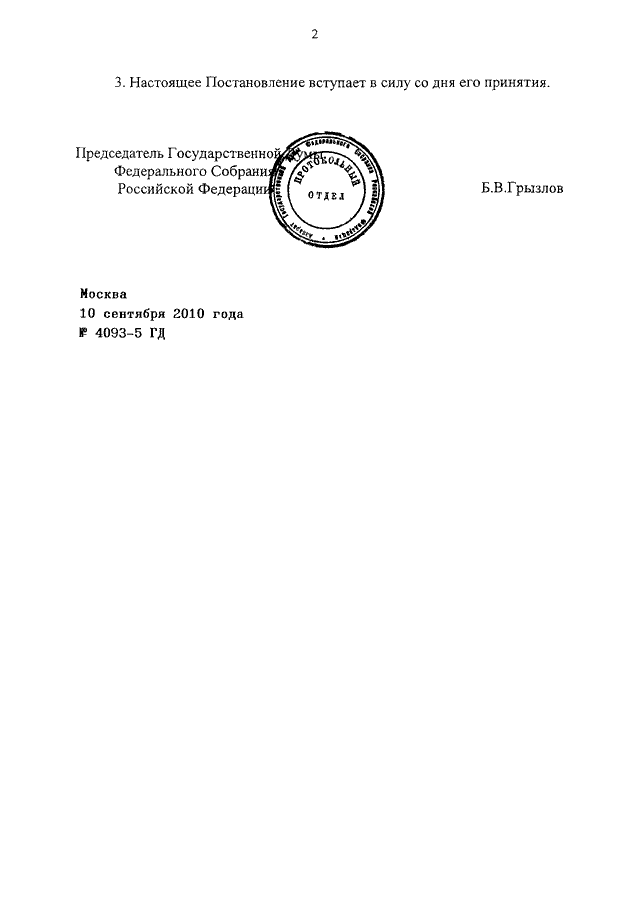 ПОСТАНОВЛЕНИЕ ГД ФС РФ от 10.09.2010 N 4093-5 ГД