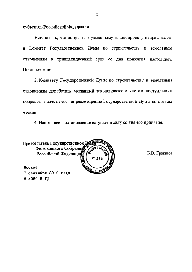 ПОСТАНОВЛЕНИЕ ГД ФС РФ от 07.09.2010 N 4080-5 ГД