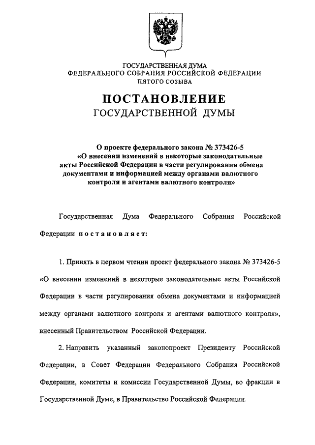 "О ПРОЕКТЕ ФЕДЕРАЛЬНОГО ЗАКОНА N 373426-5 "О ВНЕСЕНИИ ИЗМЕНЕНИЙ В