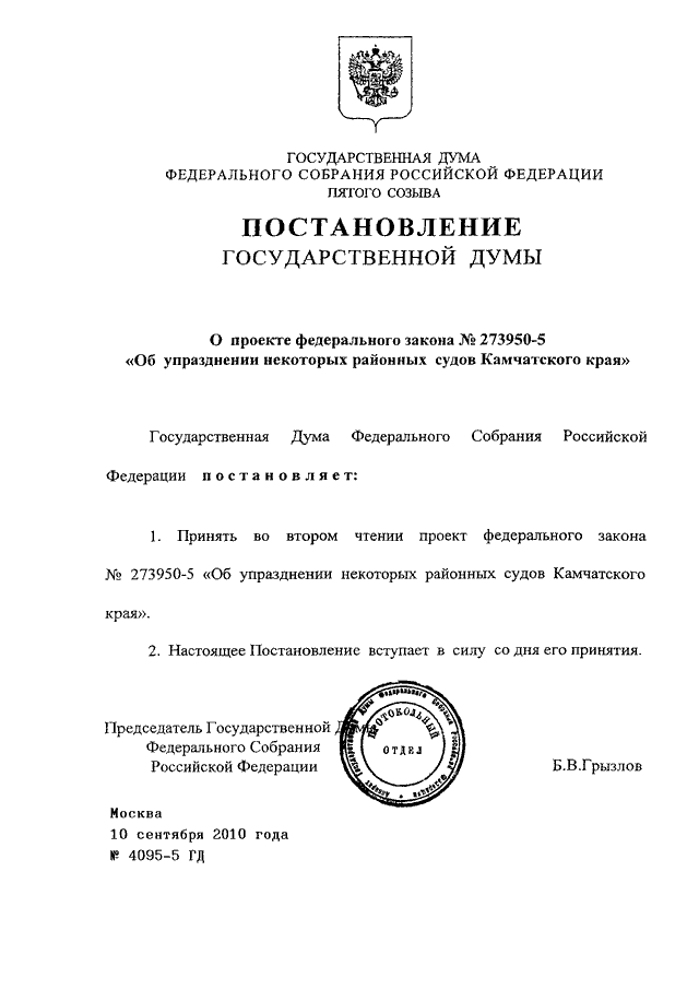 ПОСТАНОВЛЕНИЕ ГД ФС РФ от 10.09.2010 N 4095-5 ГД