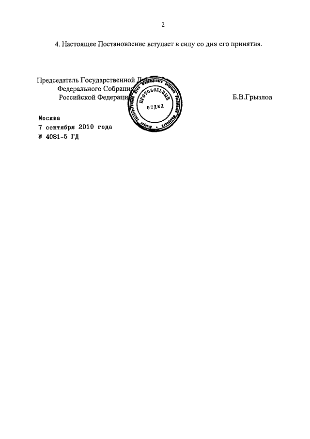 ПОСТАНОВЛЕНИЕ ГД ФС РФ от 07.09.2010 N 4081-5 ГД