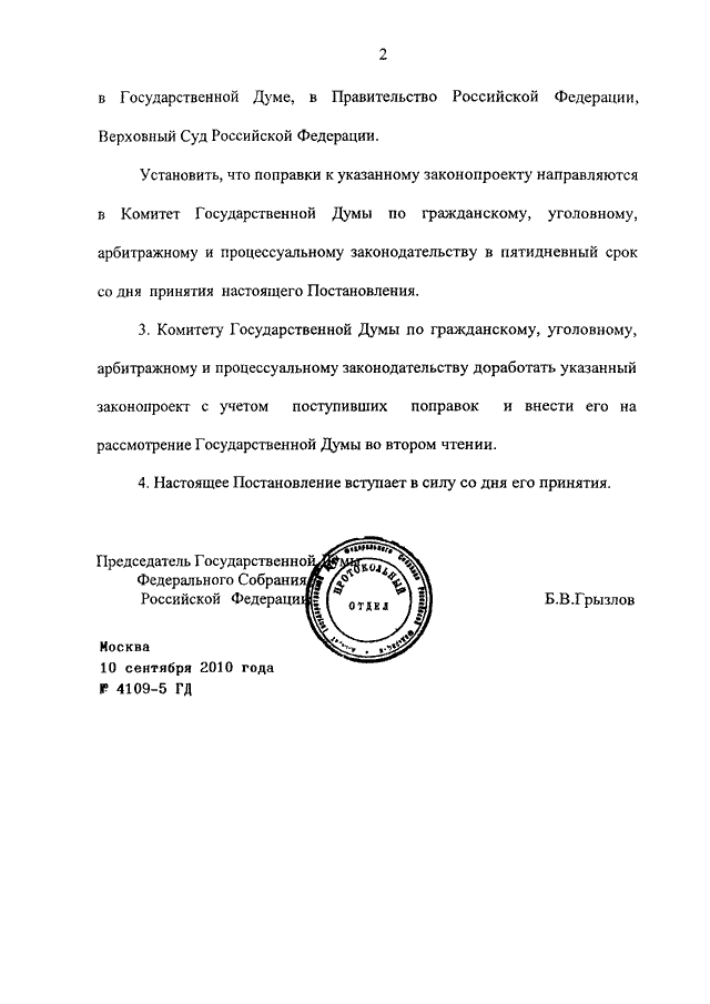 ПОСТАНОВЛЕНИЕ ГД ФС РФ от 10.09.2010 N 4109-5 ГД