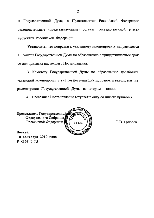 ПОСТАНОВЛЕНИЕ ГД ФС РФ от 10.09.2010 N 4107-5 ГД