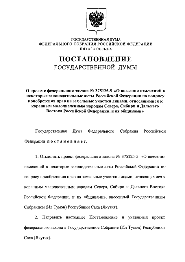 "О ПРОЕКТЕ ФЕДЕРАЛЬНОГО ЗАКОНА N 375125-5 "О ВНЕСЕНИИ ИЗМЕНЕНИЙ В