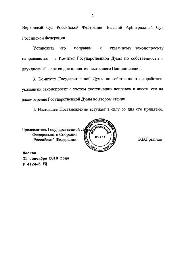 ПОСТАНОВЛЕНИЕ ГД ФС РФ от 21.09.2010 N 4124-5 ГД