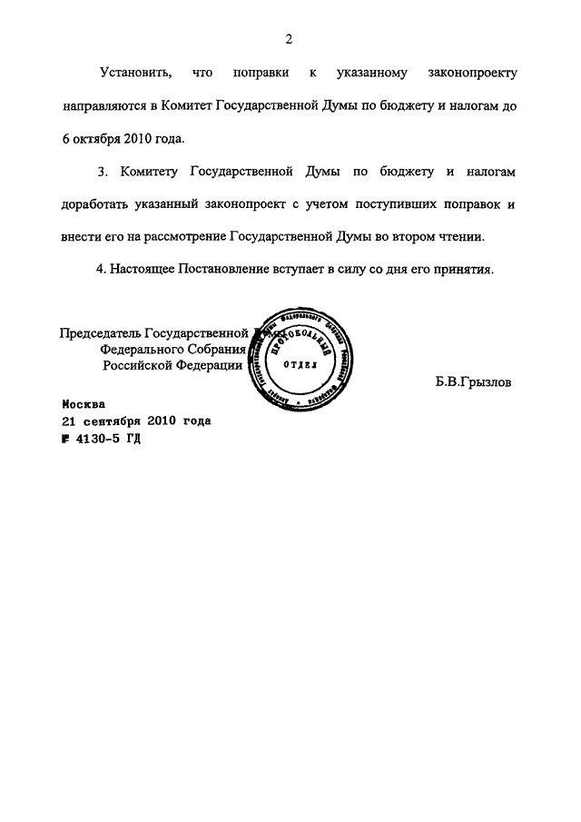 ПОСТАНОВЛЕНИЕ ГД ФС РФ от 21.09.2010 N 4130-5 ГД