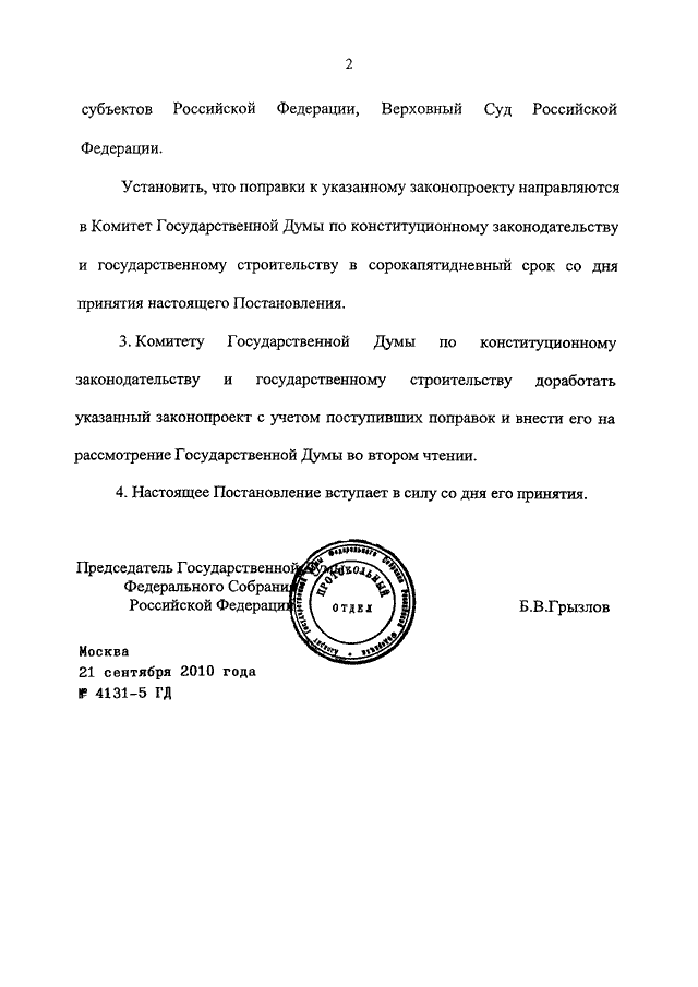 ПОСТАНОВЛЕНИЕ ГД ФС РФ от 21.09.2010 N 4131-5 ГД