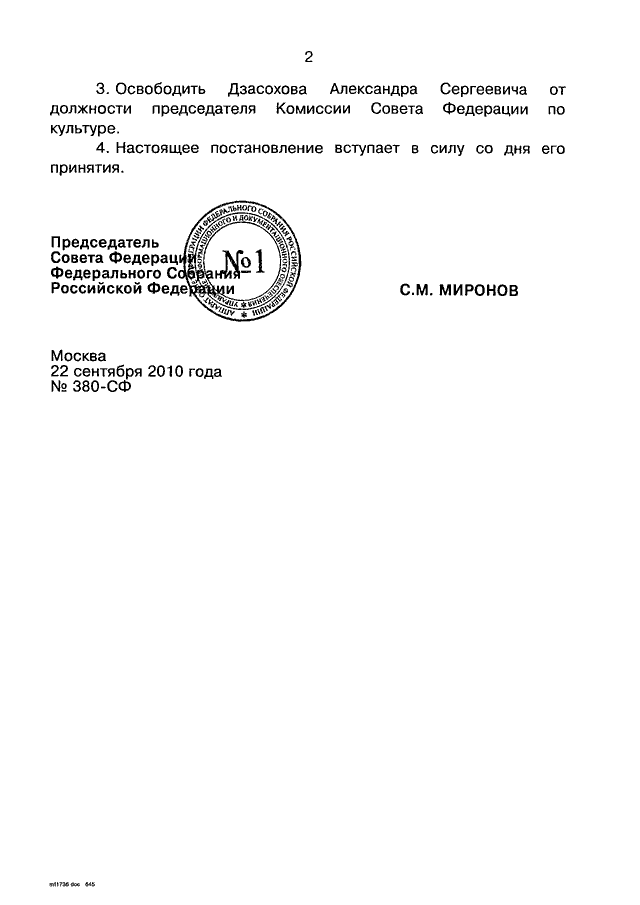 ПОСТАНОВЛЕНИЕ СФ ФС РФ от 22.09.2010 N 380-СФ