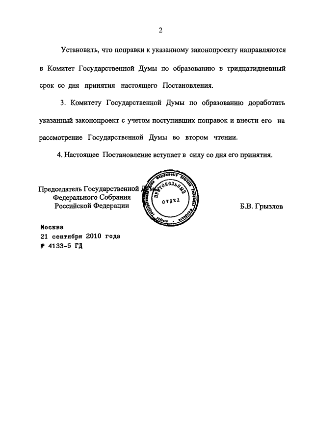 ПОСТАНОВЛЕНИЕ ГД ФС РФ от 21.09.2010 N 4133-5 ГД