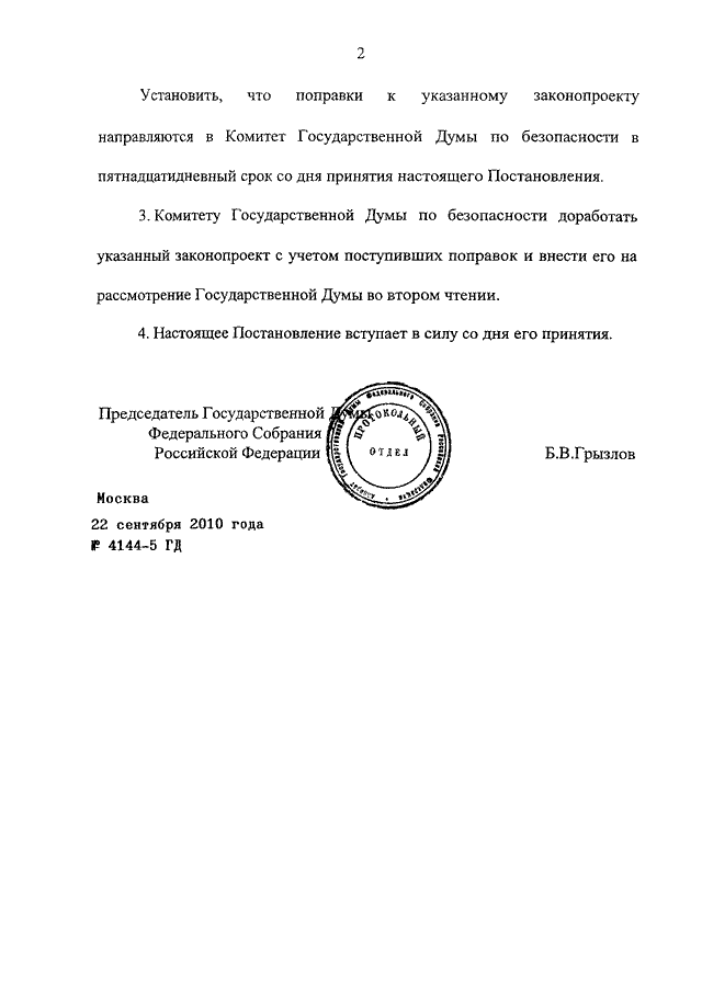 ПОСТАНОВЛЕНИЕ ГД ФС РФ от 22.09.2010 N 4144-5 ГД