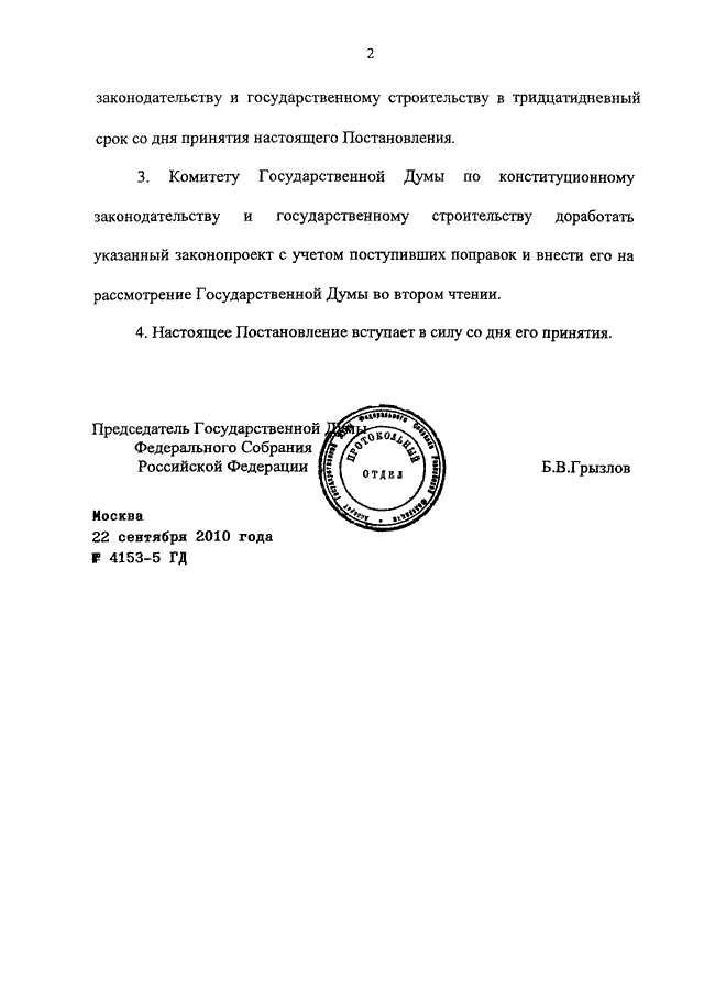 ПОСТАНОВЛЕНИЕ ГД ФС РФ от 22.09.2010 N 4153-5 ГД