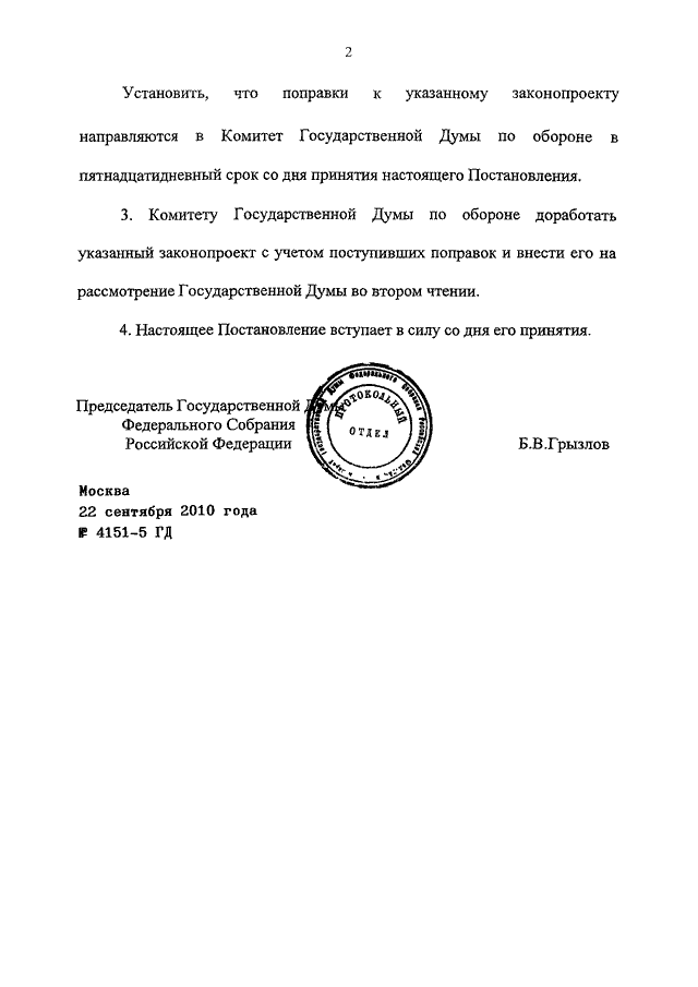 ПОСТАНОВЛЕНИЕ ГД ФС РФ от 22.09.2010 N 4151-5 ГД