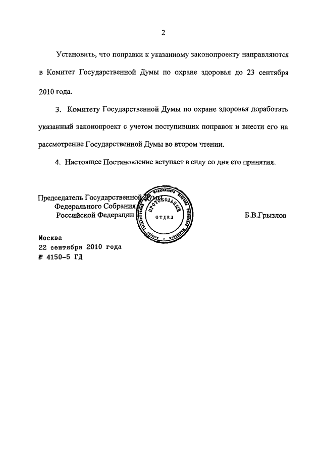 ПОСТАНОВЛЕНИЕ ГД ФС РФ от 22.09.2010 N 4150-5 ГД