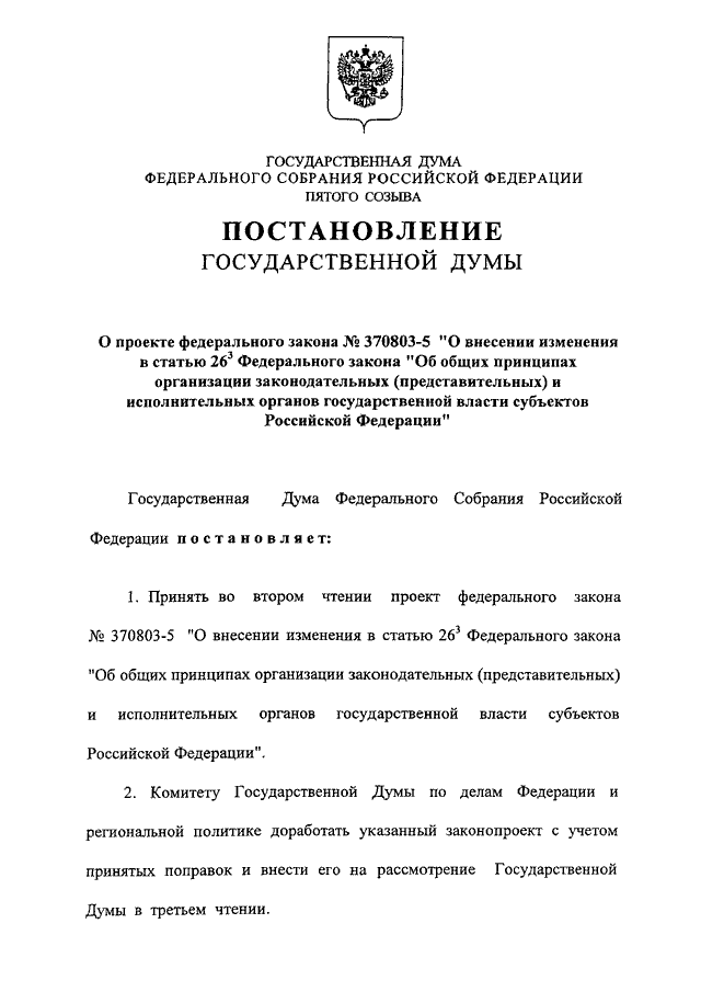 "О ПРОЕКТЕ ФЕДЕРАЛЬНОГО ЗАКОНА N 370803-5 "О ВНЕСЕНИИ ИЗМЕНЕНИЯ В
