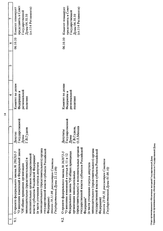 "О КАЛЕНДАРЕ РАССМОТРЕНИЯ ВОПРОСОВ ГОСУДАРСТВЕННОЙ ДУМОЙ С 5 ПО 22 ОКТЯБРЯ 2010 ГОДА"