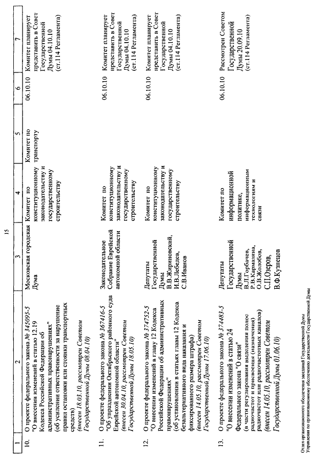 "О КАЛЕНДАРЕ РАССМОТРЕНИЯ ВОПРОСОВ ГОСУДАРСТВЕННОЙ ДУМОЙ С 5 ПО 22 ОКТЯБРЯ 2010 ГОДА"