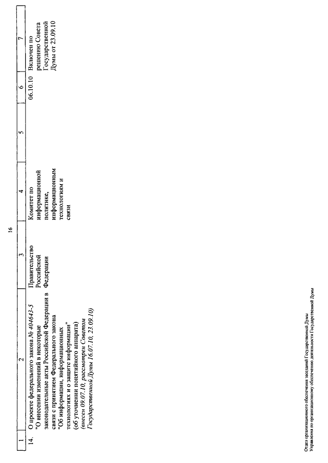 "О КАЛЕНДАРЕ РАССМОТРЕНИЯ ВОПРОСОВ ГОСУДАРСТВЕННОЙ ДУМОЙ С 5 ПО 22 ОКТЯБРЯ 2010 ГОДА"