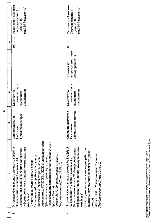 "О КАЛЕНДАРЕ РАССМОТРЕНИЯ ВОПРОСОВ ГОСУДАРСТВЕННОЙ ДУМОЙ С 5 ПО 22 ОКТЯБРЯ 2010 ГОДА"