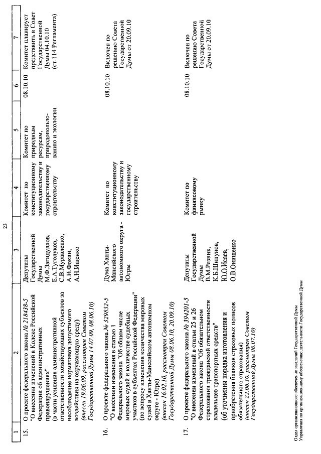 "О КАЛЕНДАРЕ РАССМОТРЕНИЯ ВОПРОСОВ ГОСУДАРСТВЕННОЙ ДУМОЙ С 5 ПО 22 ОКТЯБРЯ 2010 ГОДА"