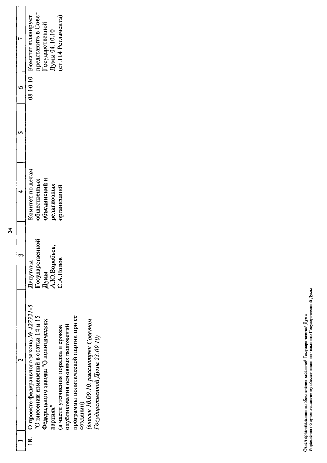 "О КАЛЕНДАРЕ РАССМОТРЕНИЯ ВОПРОСОВ ГОСУДАРСТВЕННОЙ ДУМОЙ С 5 ПО 22 ОКТЯБРЯ 2010 ГОДА"