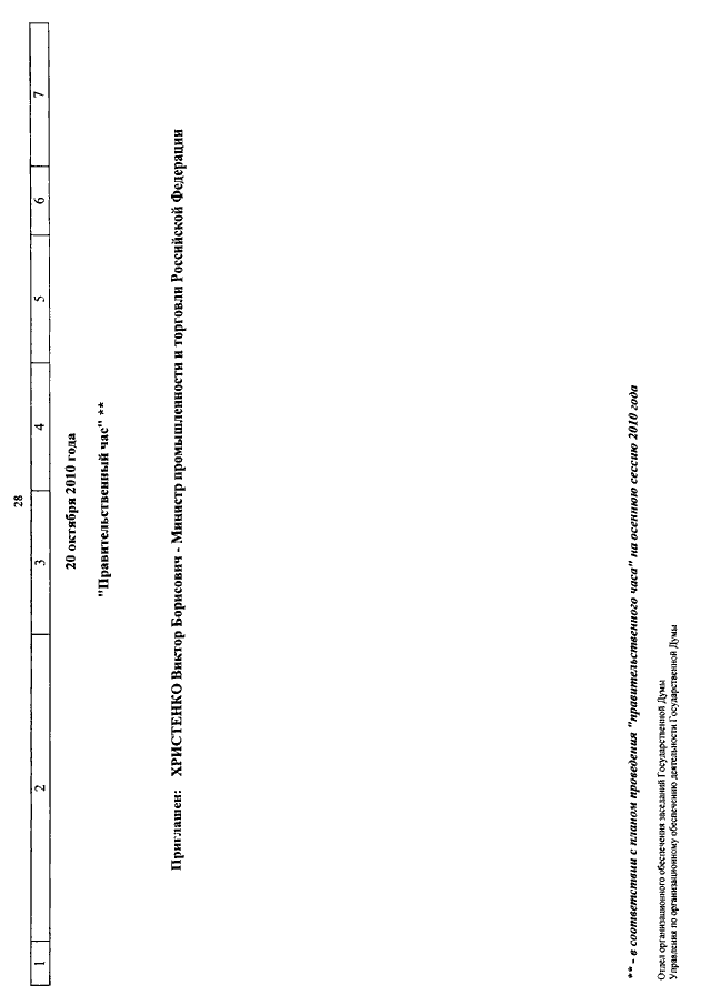 "О КАЛЕНДАРЕ РАССМОТРЕНИЯ ВОПРОСОВ ГОСУДАРСТВЕННОЙ ДУМОЙ С 5 ПО 22 ОКТЯБРЯ 2010 ГОДА"