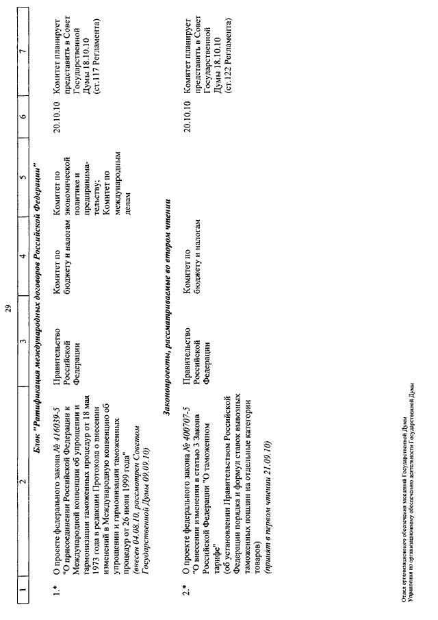 "О КАЛЕНДАРЕ РАССМОТРЕНИЯ ВОПРОСОВ ГОСУДАРСТВЕННОЙ ДУМОЙ С 5 ПО 22 ОКТЯБРЯ 2010 ГОДА"