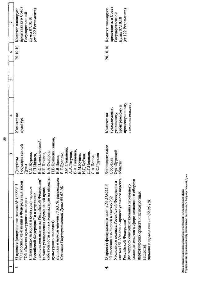 "О КАЛЕНДАРЕ РАССМОТРЕНИЯ ВОПРОСОВ ГОСУДАРСТВЕННОЙ ДУМОЙ С 5 ПО 22 ОКТЯБРЯ 2010 ГОДА"