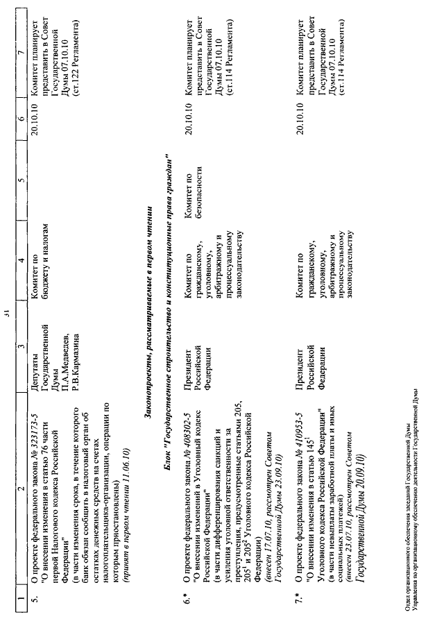 "О КАЛЕНДАРЕ РАССМОТРЕНИЯ ВОПРОСОВ ГОСУДАРСТВЕННОЙ ДУМОЙ С 5 ПО 22 ОКТЯБРЯ 2010 ГОДА"