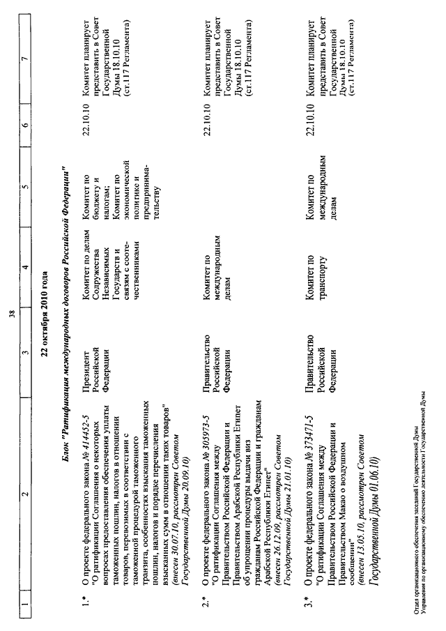 "О КАЛЕНДАРЕ РАССМОТРЕНИЯ ВОПРОСОВ ГОСУДАРСТВЕННОЙ ДУМОЙ С 5 ПО 22 ОКТЯБРЯ 2010 ГОДА"