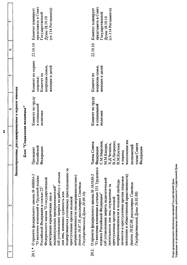 "О КАЛЕНДАРЕ РАССМОТРЕНИЯ ВОПРОСОВ ГОСУДАРСТВЕННОЙ ДУМОЙ С 5 ПО 22 ОКТЯБРЯ 2010 ГОДА"