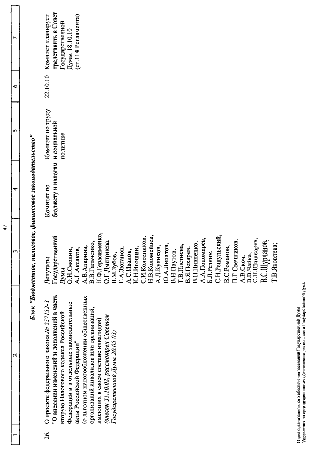 "О КАЛЕНДАРЕ РАССМОТРЕНИЯ ВОПРОСОВ ГОСУДАРСТВЕННОЙ ДУМОЙ С 5 ПО 22 ОКТЯБРЯ 2010 ГОДА"