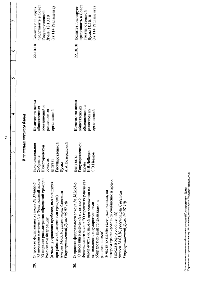 "О КАЛЕНДАРЕ РАССМОТРЕНИЯ ВОПРОСОВ ГОСУДАРСТВЕННОЙ ДУМОЙ С 5 ПО 22 ОКТЯБРЯ 2010 ГОДА"