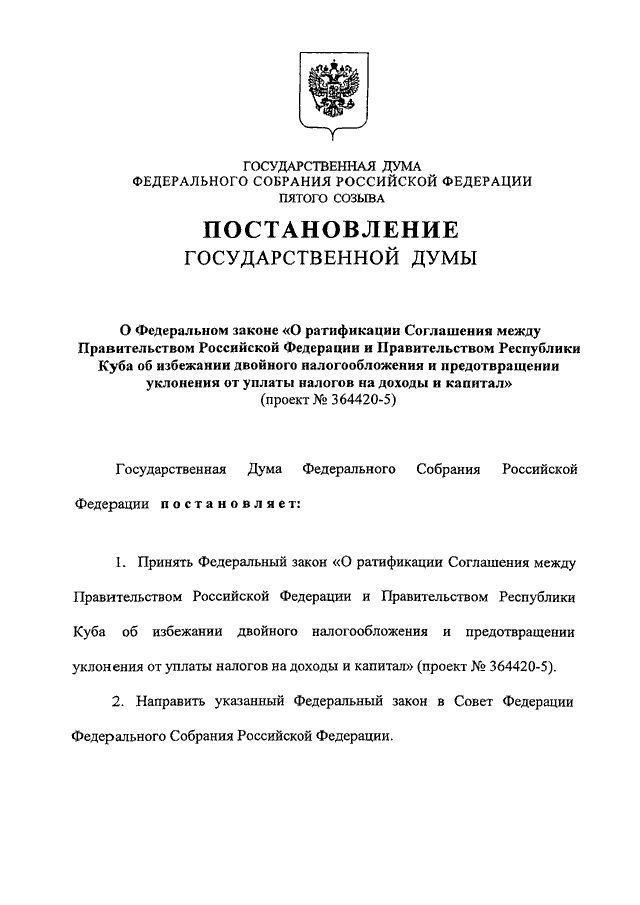 КУБА ОБ ИЗБЕЖАНИИ ДВОЙНОГО НАЛОГООБЛОЖЕНИЯ И ПРЕДОТВРАЩЕНИИ