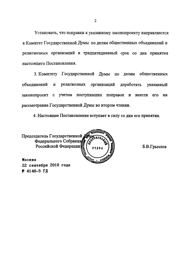 ПОСТАНОВЛЕНИЕ ГД ФС РФ от 22.09.2010 N 4148-5 ГД