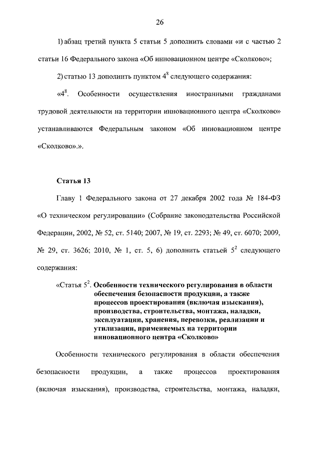"О ВНЕСЕНИИ ИЗМЕНЕНИЙ В ОТДЕЛЬНЫЕ ЗАКОНОДАТЕЛЬНЫЕ АКТЫ РОССИЙСКОЙ ФЕДЕРАЦИИ В СВЯЗИ С ПРИНЯТИЕМ ФЕДЕРАЛЬНОГО ЗАКОНА "ОБ ИННОВАЦИОННОМ ЦЕНТРЕ "СКОЛКОВО"