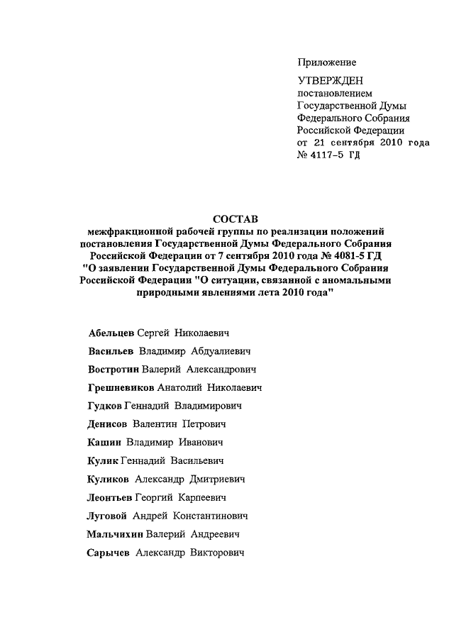 ПОСТАНОВЛЕНИЕ ГД ФС РФ от 21.09.2010 N 4117-5 ГД