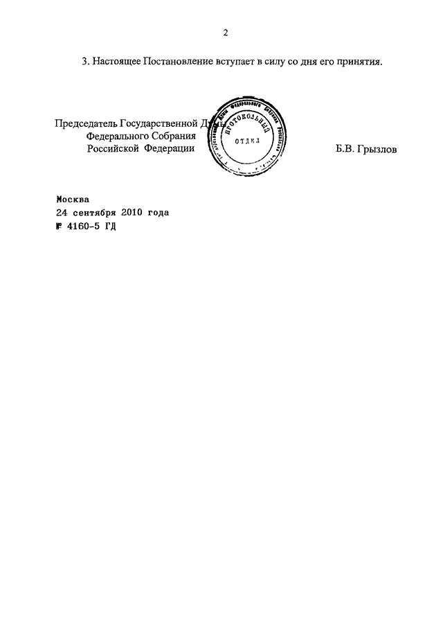 ПОСТАНОВЛЕНИЕ ГД ФС РФ от 24.09.2010 N 4160-5 ГД