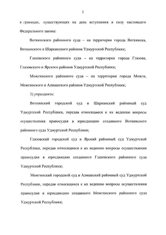 "О СОЗДАНИИ И УПРАЗДНЕНИИ НЕКОТОРЫХ РАЙОННЫХ (ГОРОДСКИХ) СУДОВ УДМУРТСКОЙ РЕСПУБЛИКИ"