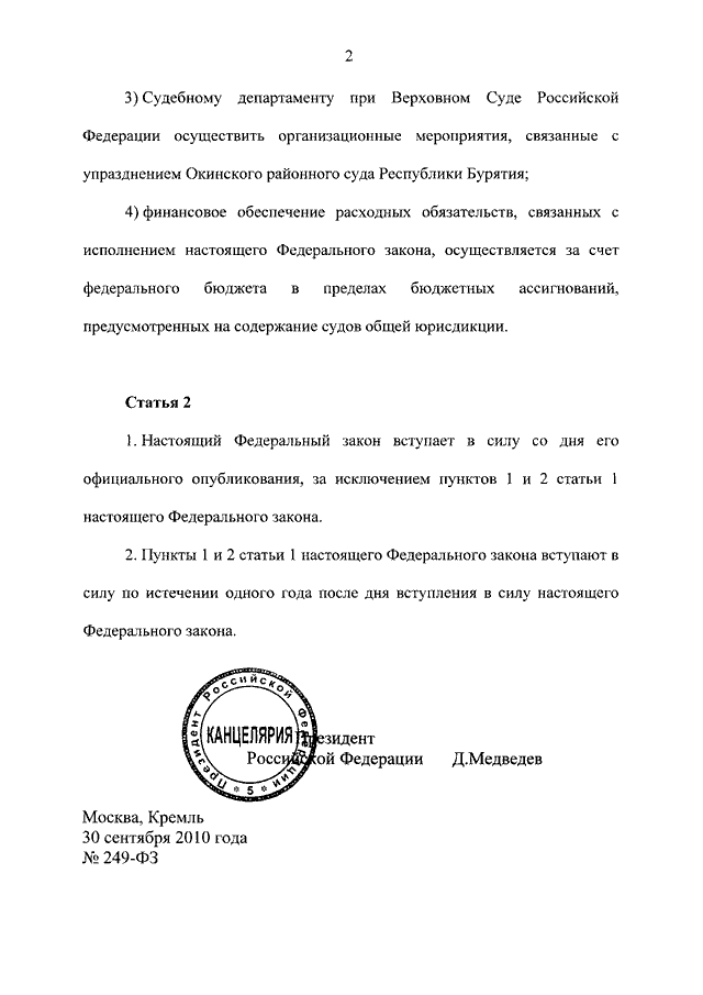 ФЕДЕРАЛЬНЫЙ ЗАКОН от 30.09.2010 N 249-ФЗ