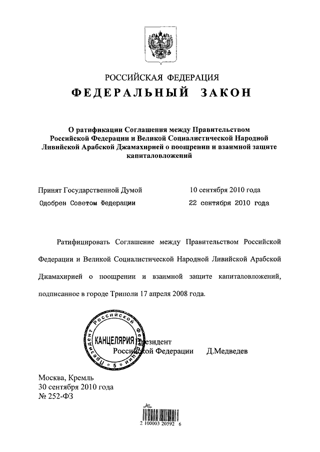 ФЕДЕРАЛЬНЫЙ ЗАКОН от 30.09.2010 N 252-ФЗ