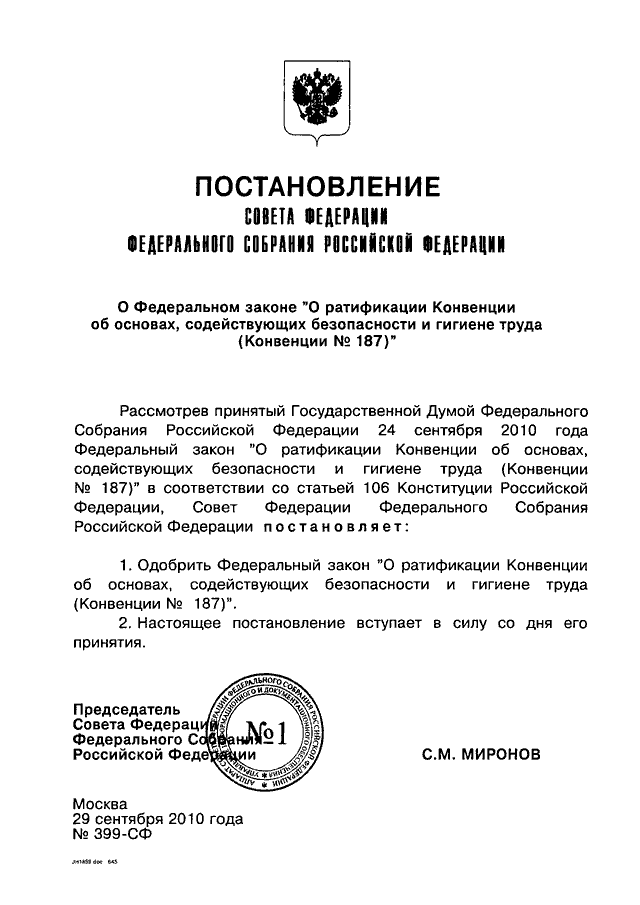 ПОСТАНОВЛЕНИЕ СФ ФС РФ от 29.09.2010 N 399-СФ