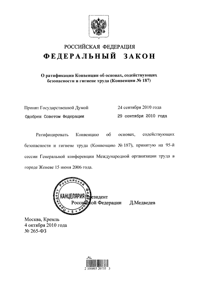 ФЕДЕРАЛЬНЫЙ ЗАКОН от 04.10.2010 N 265-ФЗ