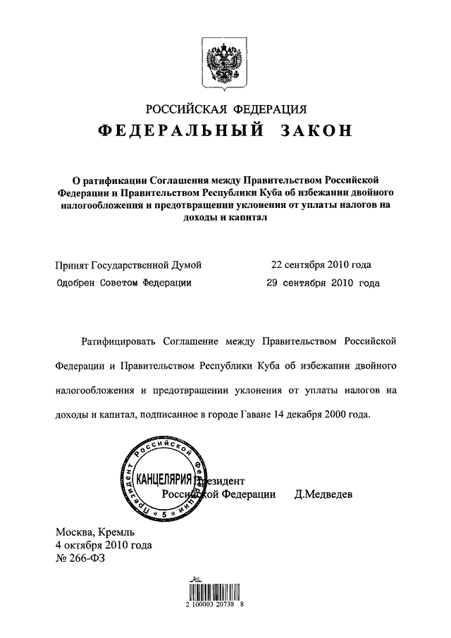 ФЕДЕРАЛЬНЫЙ ЗАКОН от 04.10.2010 N 266-ФЗ