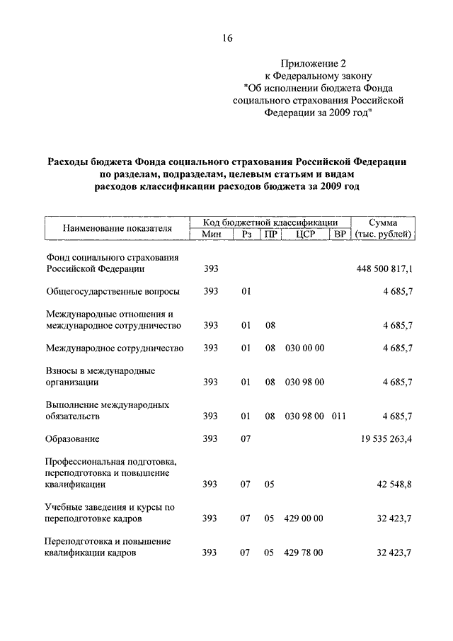 "ОБ ИСПОЛНЕНИИ БЮДЖЕТА ФОНДА СОЦИАЛЬНОГО СТРАХОВАНИЯ РОССИЙСКОЙ ФЕДЕРАЦИИ ЗА 2009 ГОД"