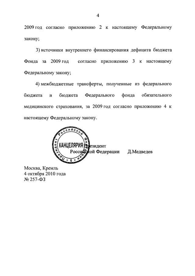 ФЕДЕРАЛЬНЫЙ ЗАКОН от 04.10.2010 N 257-ФЗ
