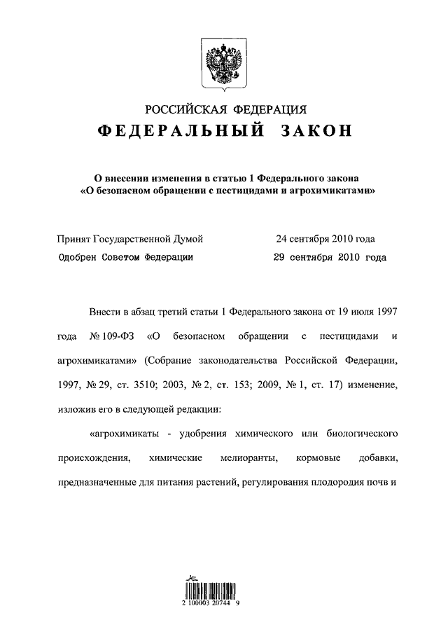 (принят ГД ФС РФ 24.09.2010)