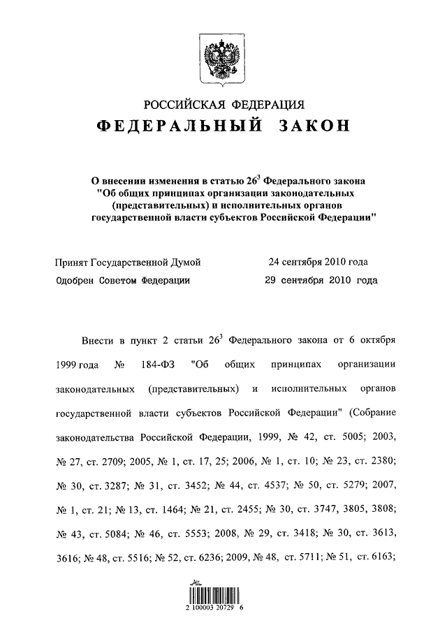 ФЕДЕРАЛЬНЫЙ ЗАКОН от 04.10.2010 N 261-ФЗ