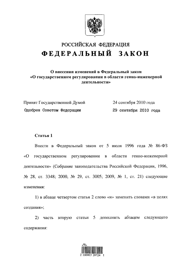 (принят ГД ФС РФ 24.09.2010)