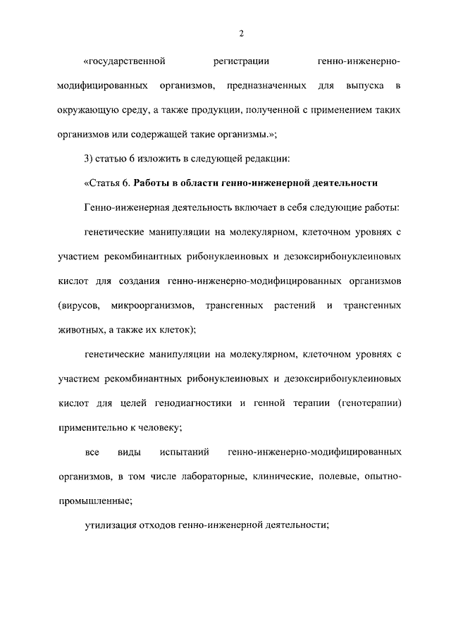 "О ВНЕСЕНИИ ИЗМЕНЕНИЙ В ФЕДЕРАЛЬНЫЙ ЗАКОН "О ГОСУДАРСТВЕННОМ РЕГУЛИРОВАНИИ В ОБЛАСТИ ГЕННО-ИНЖЕНЕРНОЙ ДЕЯТЕЛЬНОСТИ"